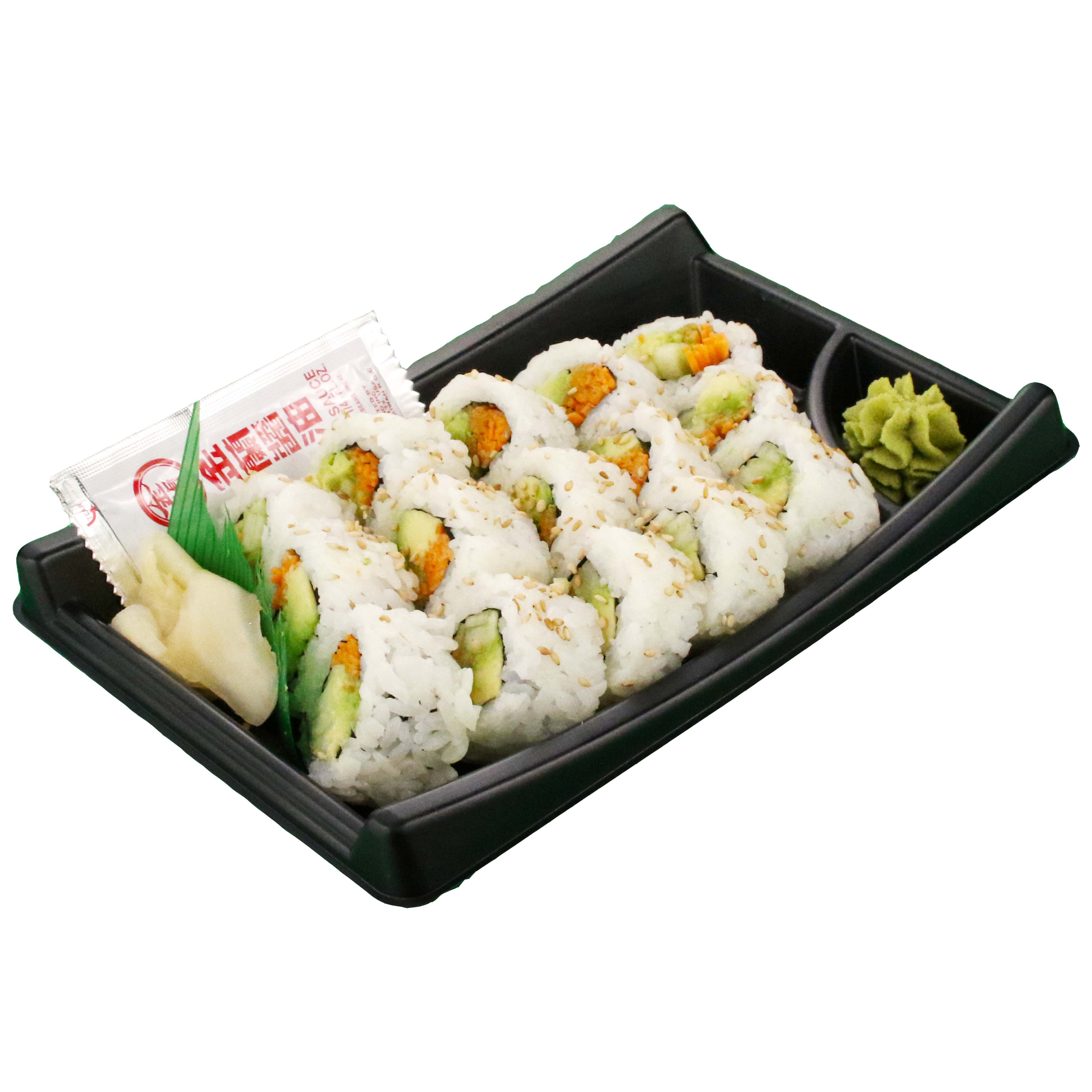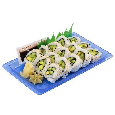 301 mg or 125 of the DV. Avocado sushi roll 1 piece 26g 24 kcal. Big size avocado sushi roll 247g 2275 kcal. The average roll may contain about 30 calories per piece or about 350 calories per roll of 12 pieces depending on the size. Calories carbs fat protein fiber cholesterol and more for Fresh Veggie Sushi Veggie Fresh Roll Mai. Vegetable sushi may contain a broad range of ingredients and the varying sizes also make it difficult to give this food a specific calorie total. Riboflavin 00. 1 package 230g Nutrition Facts. Show full nutrition information.